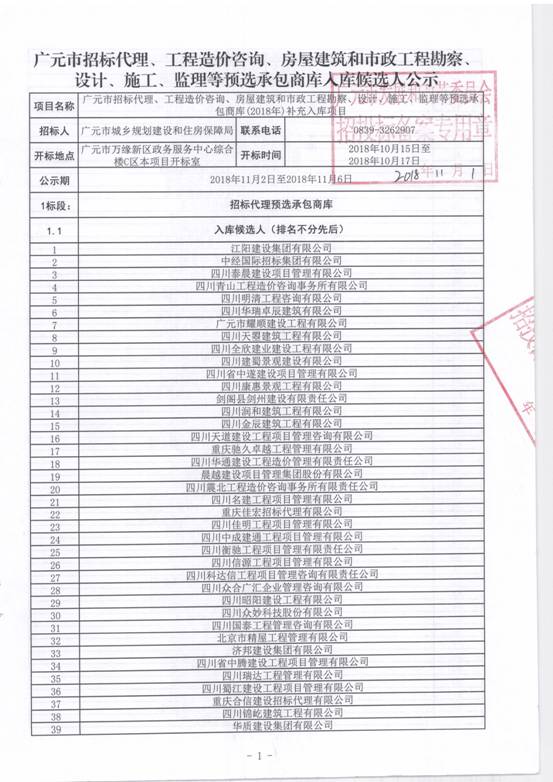 廣元房建市政入庫(kù)評(píng)審結(jié)果公示