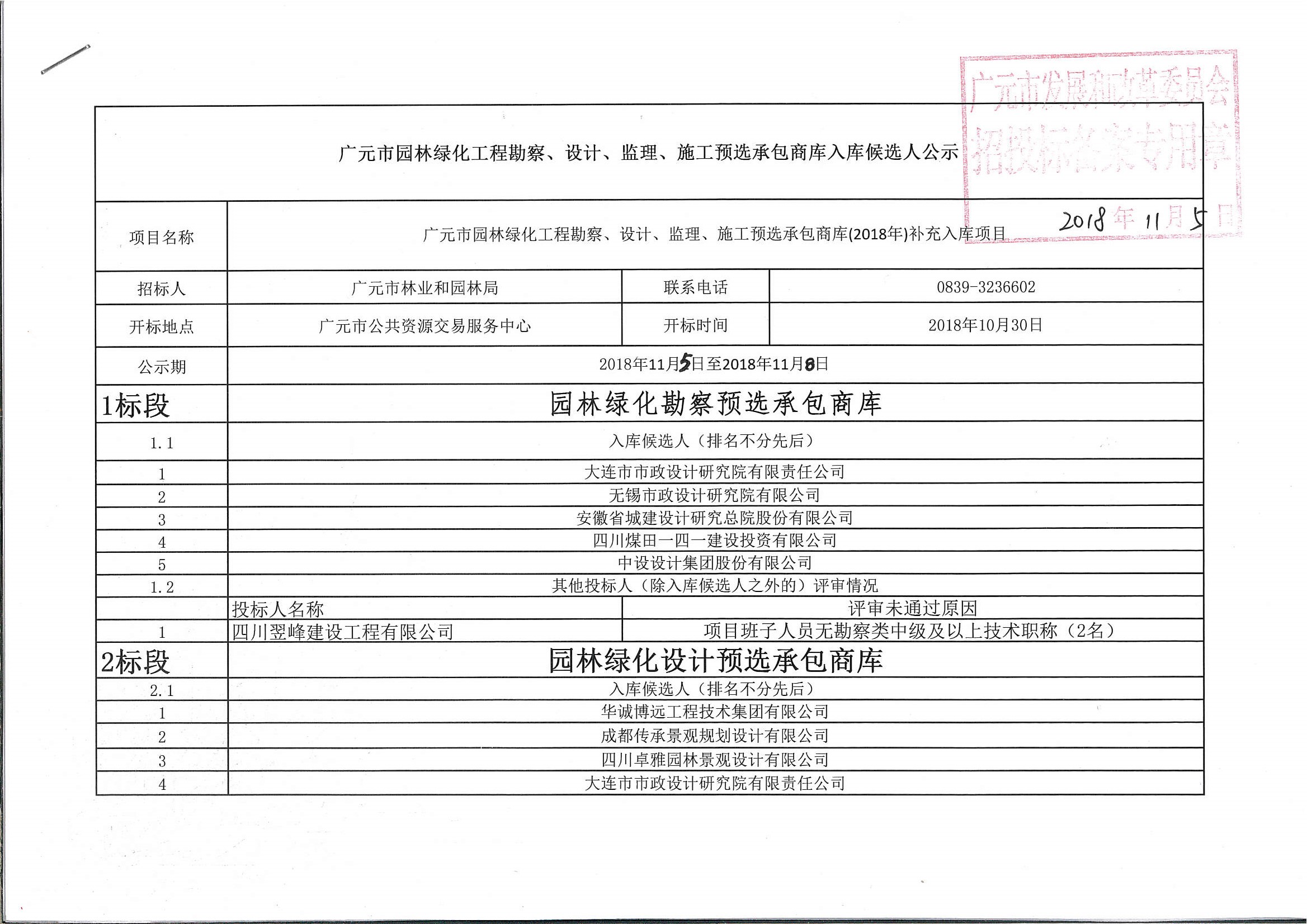 廣元市園林綠化工程勘察、設(shè)計(jì)、監(jiān)理、施工預(yù)選承包商庫入庫候選人公示