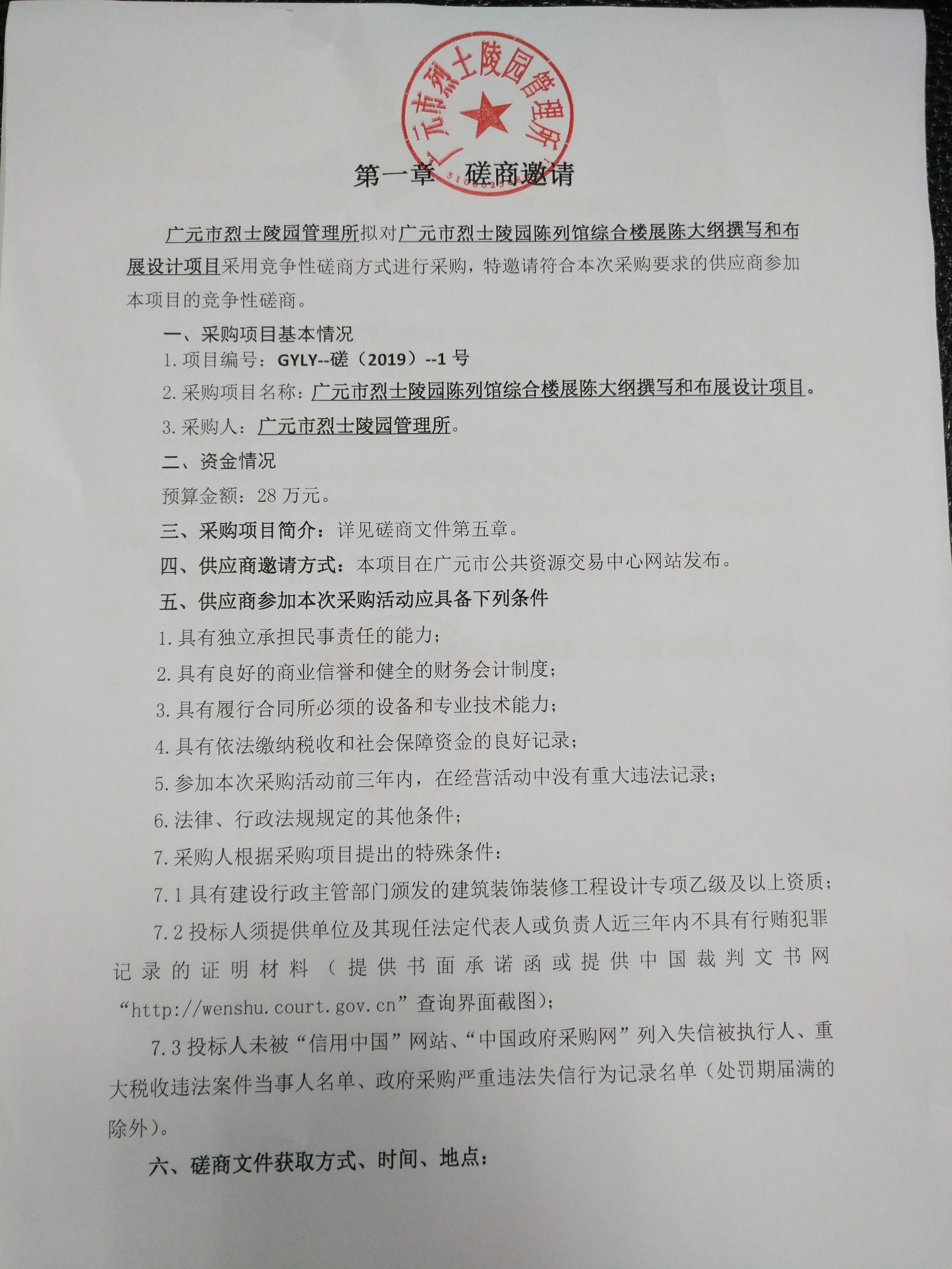 廣元市烈士陵園管理所廣元市烈士陵園陳列館綜合樓展陳大綱撰寫和布展設(shè)計項目磋商邀請公告